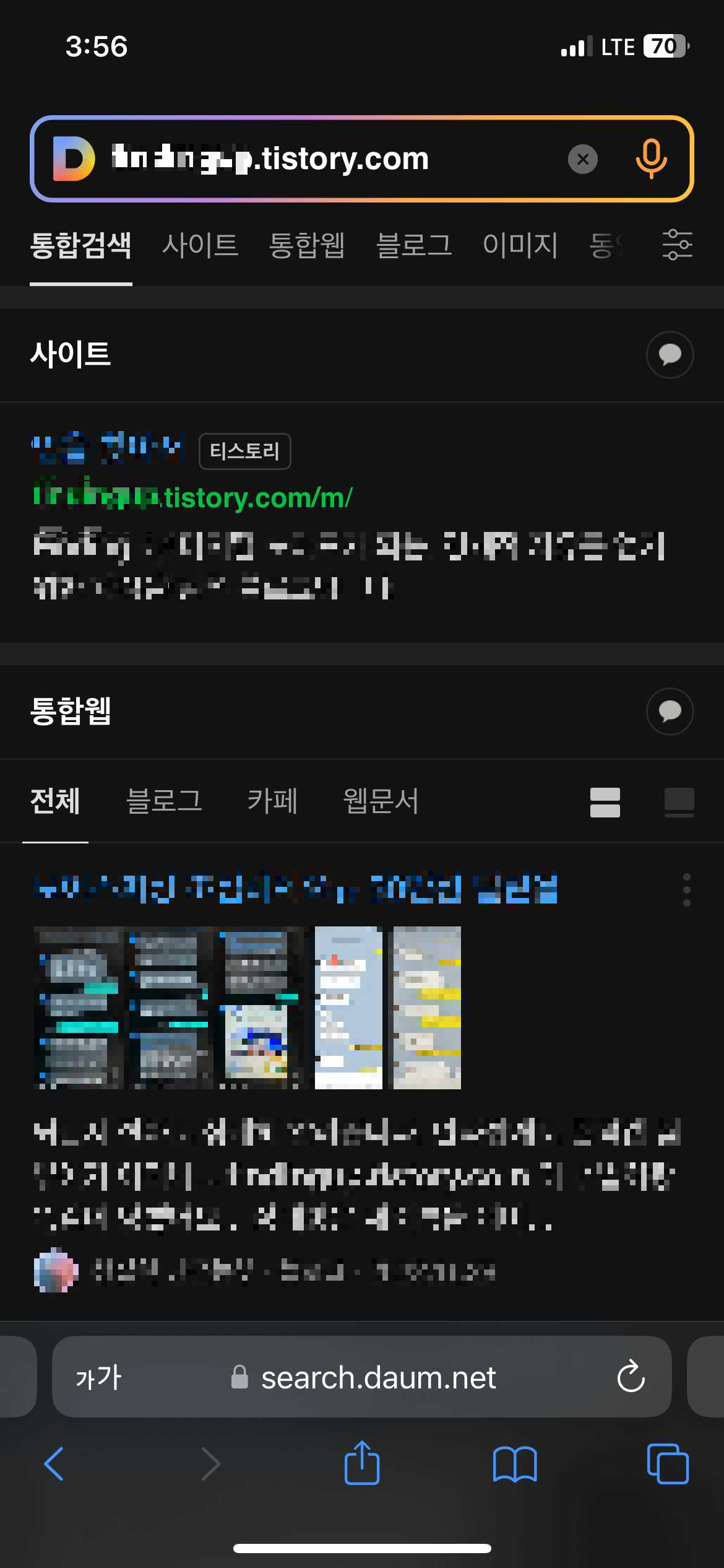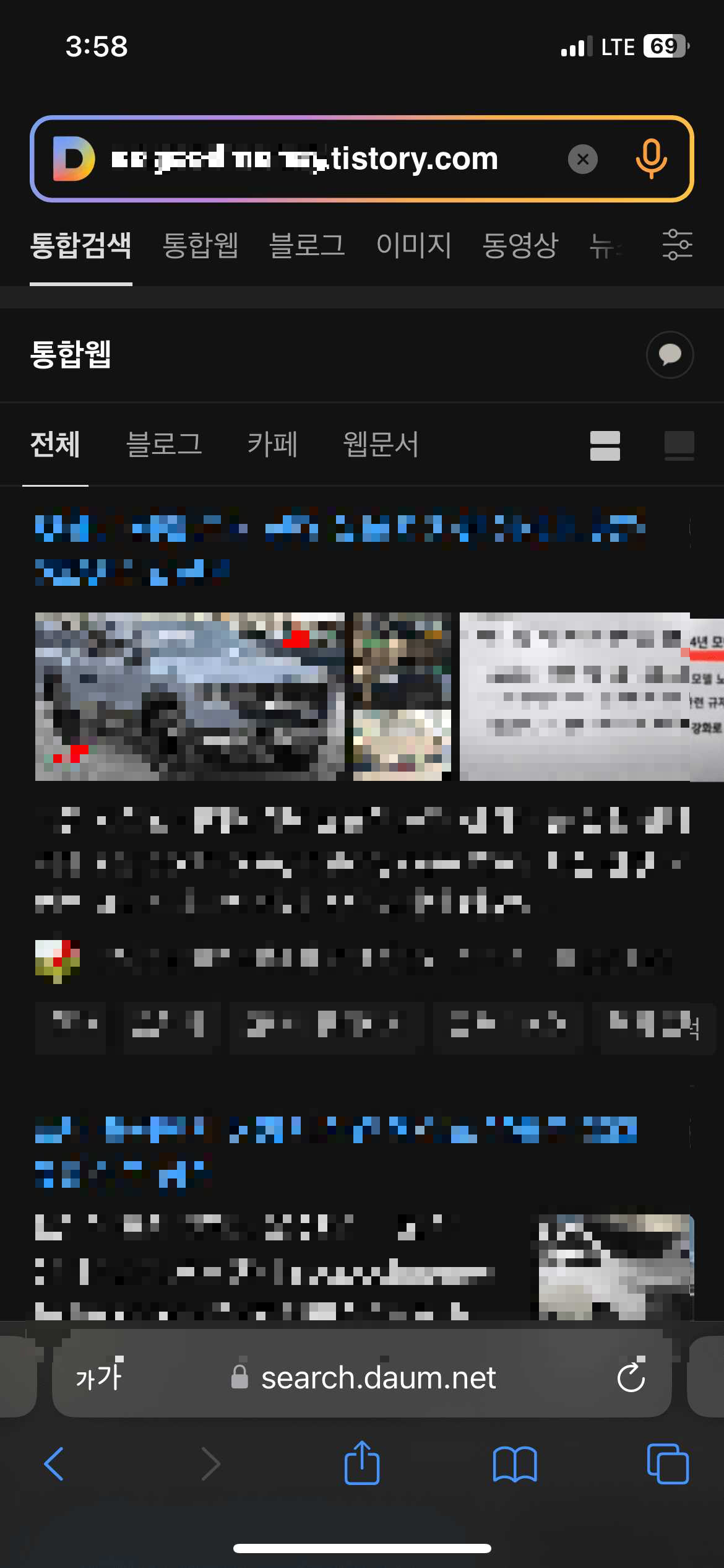최적화가 되었지는 내 블로그 주소를 다음 검색창에 그대로 입력하고 검색해 보면 알 수 있습니다.